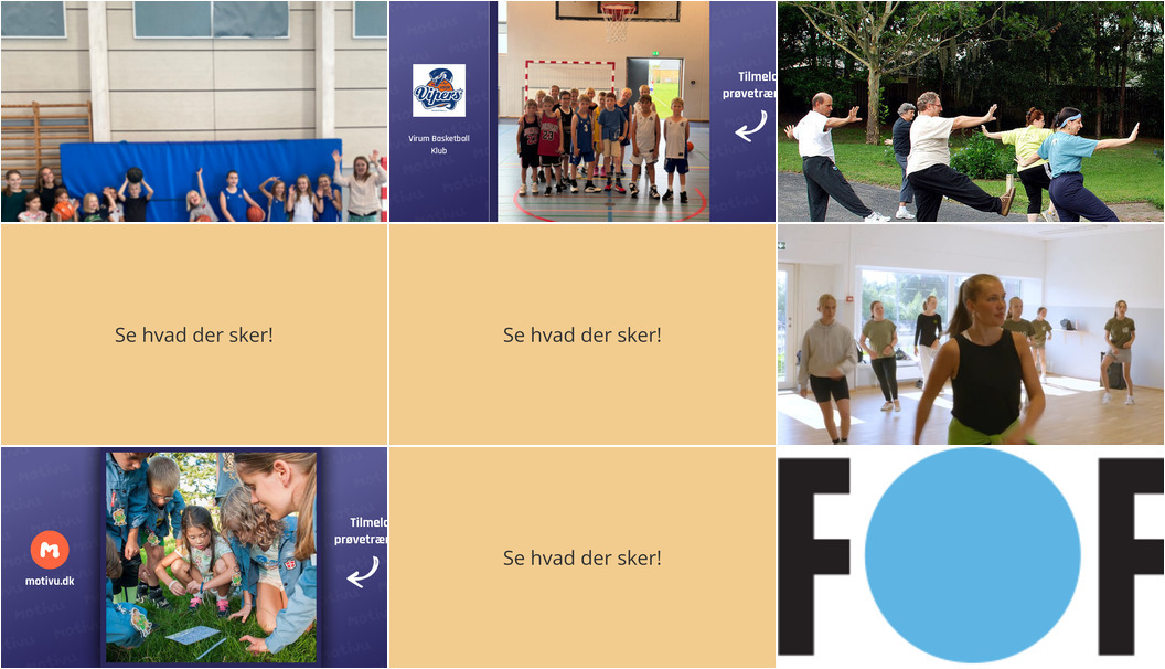 I næste uge kan du i Virum glæde dig til mange forskellige aktiviteter. Der er mulighed for at få motion og lave sjove lege for børn, opfriskende yogaoplevelser i kirkerummet, og sjov og spændende dansetræning.